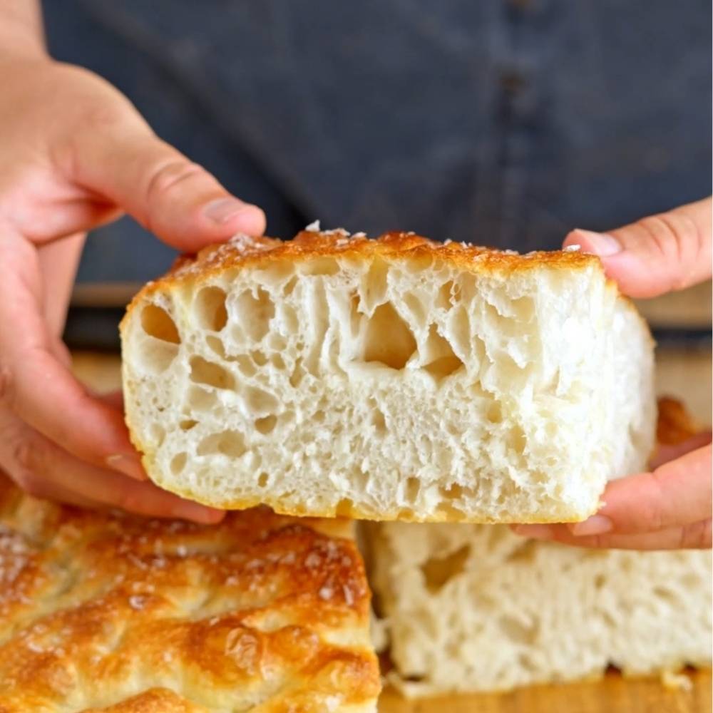 הפוקצ’ה היא בגרסה של התפחה מהירה אבל אם אתם רוצים לילה במקרר אפשר להוריד את כמות השמרים ל-1 גרם שמרים ולאחר הקיפולים להכניס להתפחה במקרר.